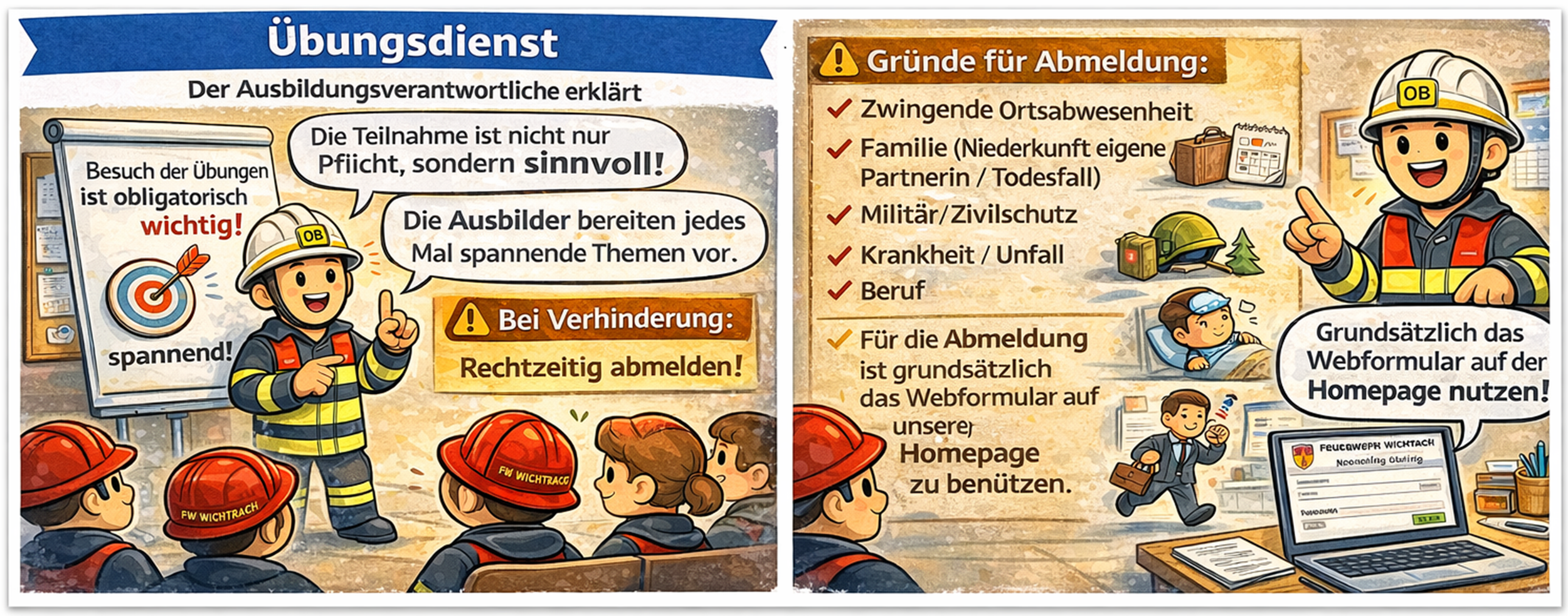 Der Besuch von mindestens 10 Übungen pro Jahr ist für alle AdF obligatorisch.